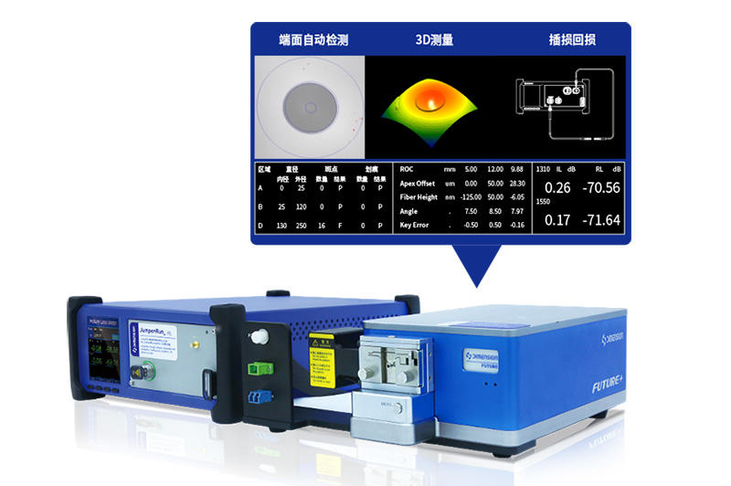 JumperRun可以实现同时快速检测,端面缺陷的自动分析,端面3D几何形貌,端面插入损耗和回波损耗的自动测试,使测试过程变得更加快速便捷高效。