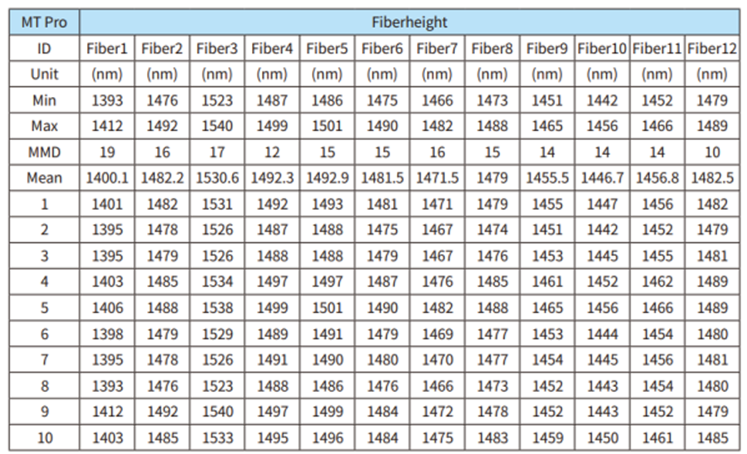 MT Pro 针对多芯连接器测量设计了新的光学系统能够准确还原光纤连接器端面细节及形貌。保证后续计算得到准确结果。